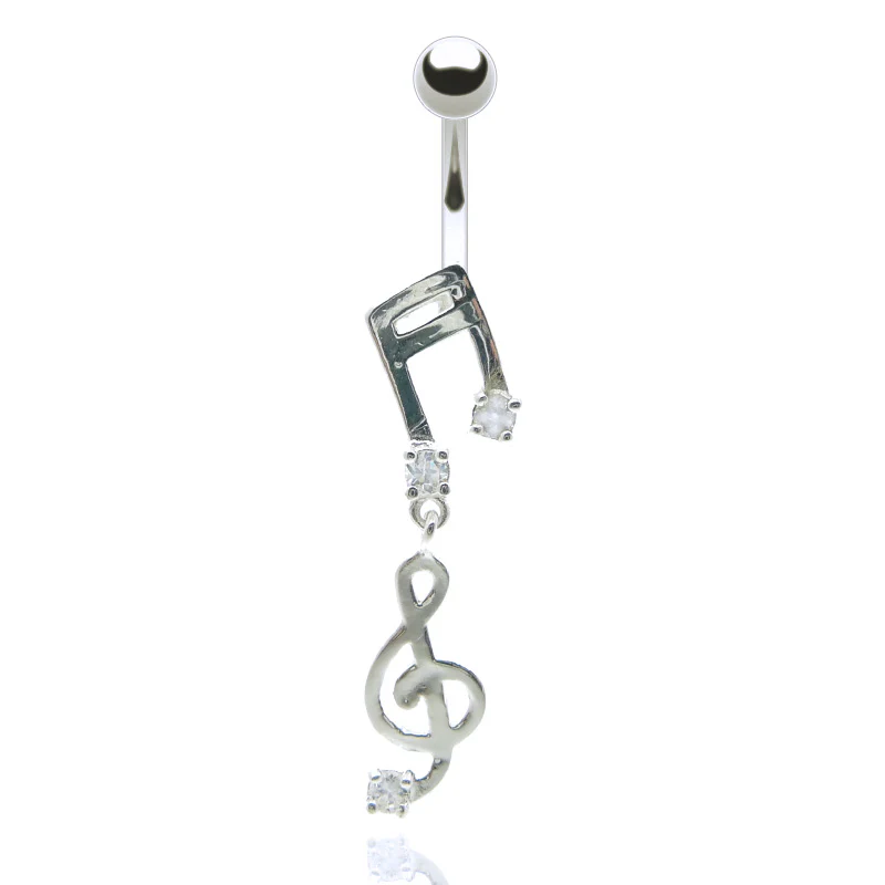 Piercing de nombril pendentif avec note de musique et clé de sol (ornés d'oxydes de zirconium).
