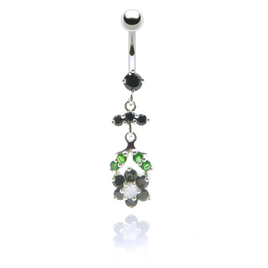 Piercing nombril pendentif avec une barre acier chirurgical et motif en argent de 30mm de longueur.